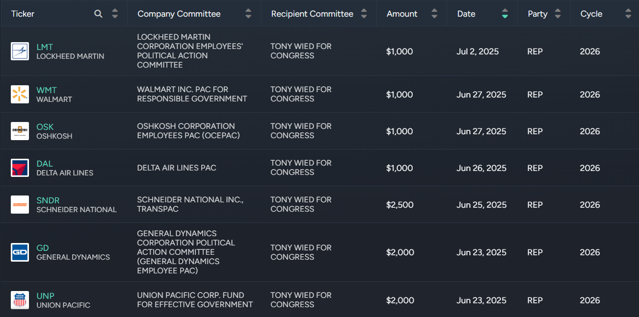 Corporate PAC Donors
